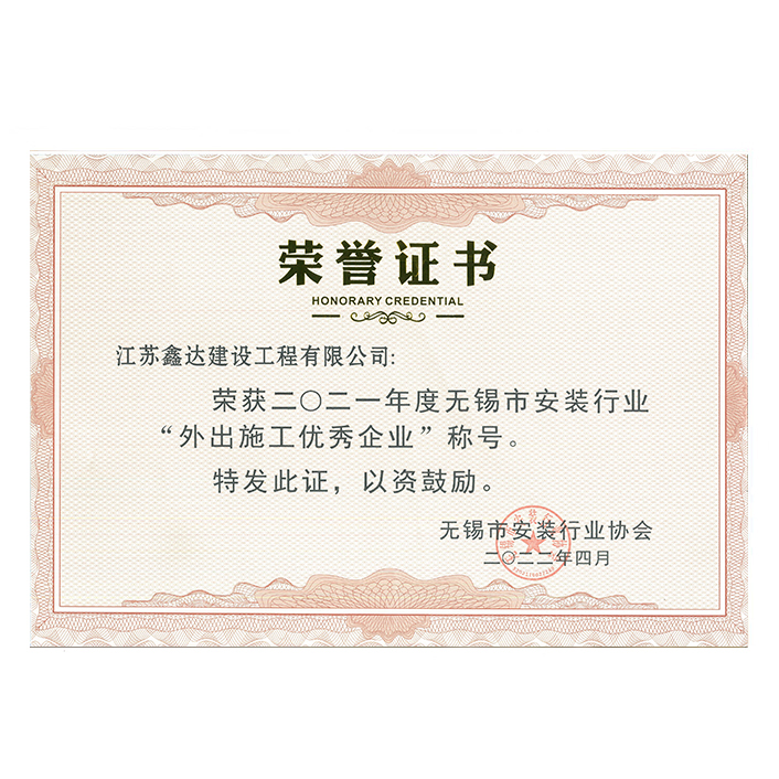 2024年度無錫市安裝行業(yè)“外出施工優(yōu)秀企業(yè)”